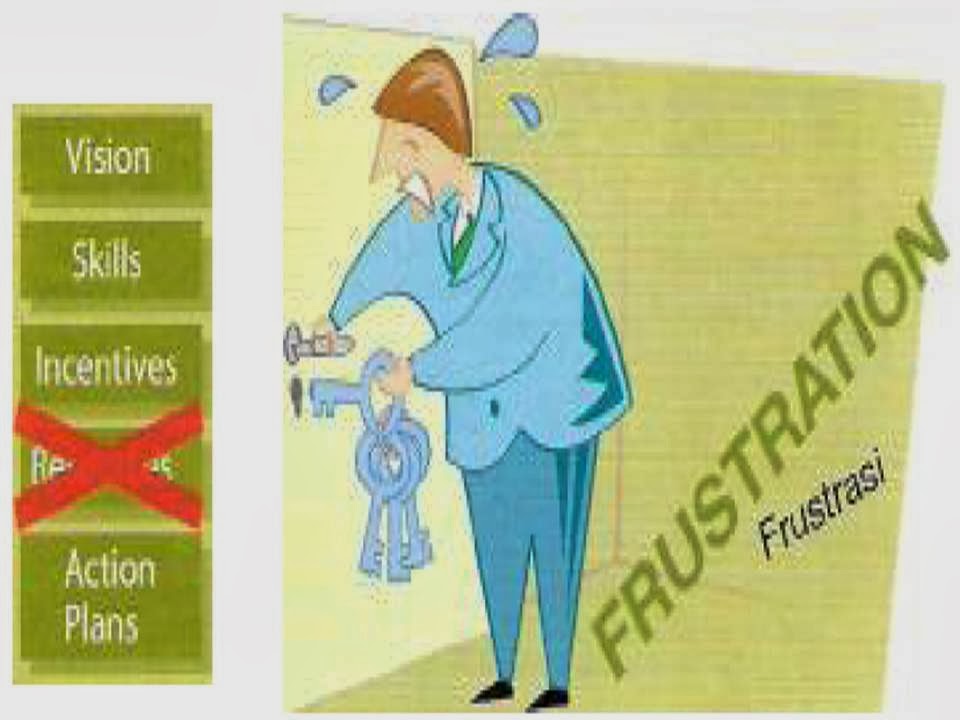 Jelas bahwa untuk melakukan perubahan memerlukan 5 hal: vision, skills, incentives, resources, dan action plans.